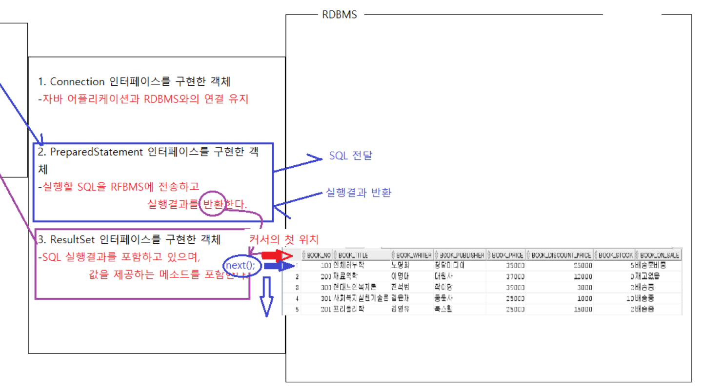 - SELECT SQL실행결과로 획득한 데이터를 담는 객체가 반드시 구현할 기능을 포함한 인터페이스이다.