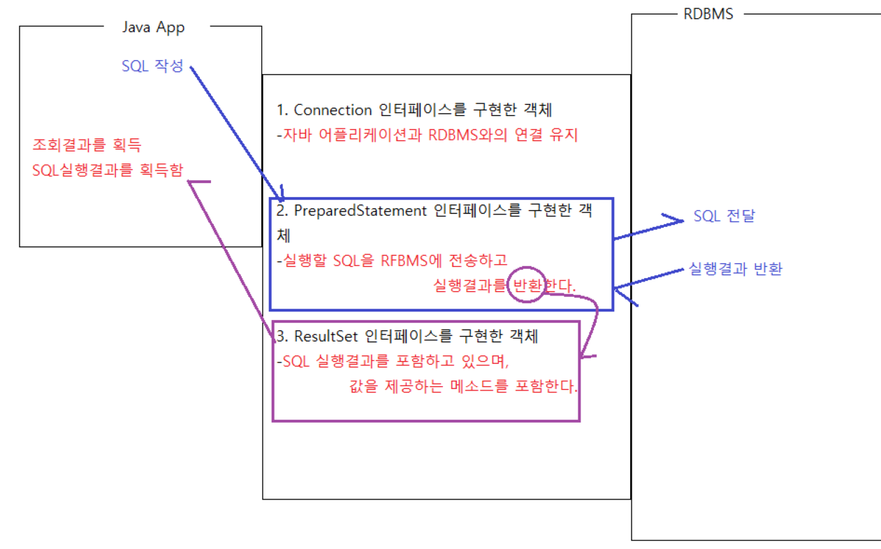 - 자바가 DB에 접속해서 SQL을 실행할 수 있도록 하는 표준이다.