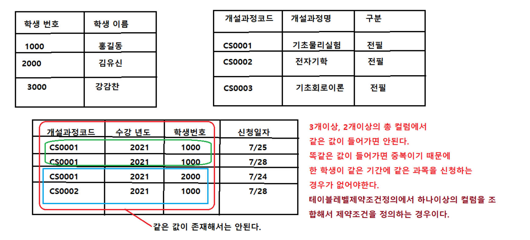 - 위배시에는 추가,삭제,변경이 되지않도록 조절한다.