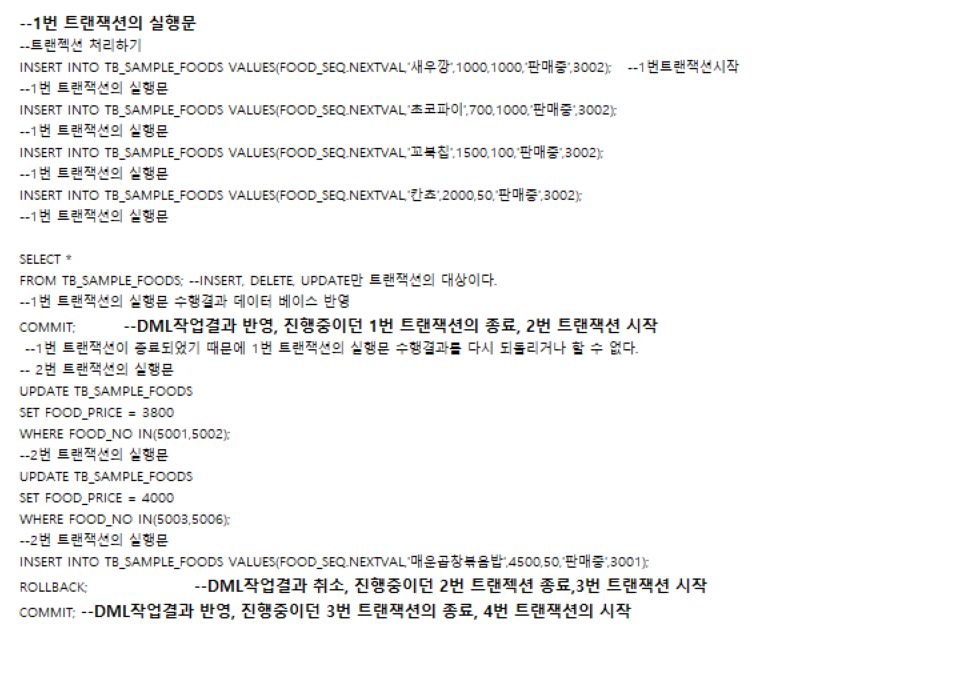 - 논리적인 작업 단위를 구성하는 데이터 조작 명령문의 모음