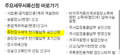 주요 세무서류신청 바로가기 (바로 가운데에 있습니다. )