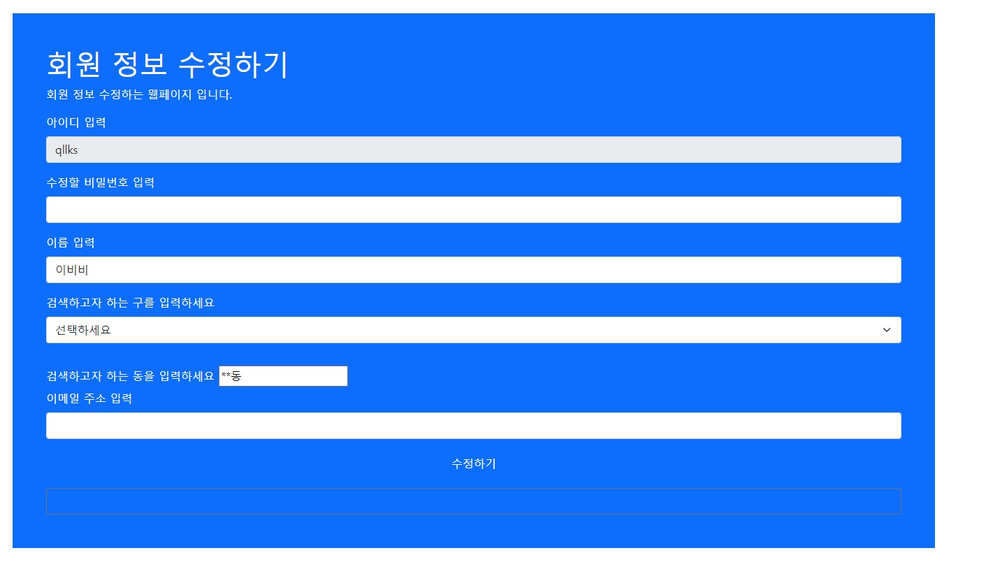 -비밀번호와 이름, 사는 구와 동, 이메일 주소를 변경할 수 있다.