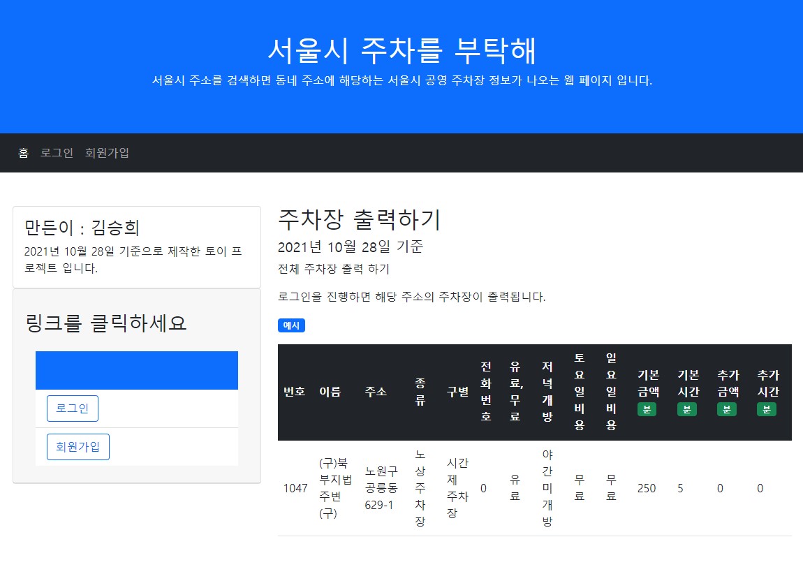 개인 토이 프로젝트 첫 번째(서울시 주차를 부탁해) 본문
