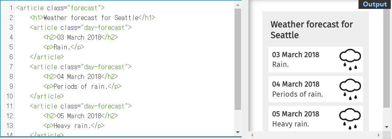 "div class = Header"->header class = "header" -> header로 축약가능하다.