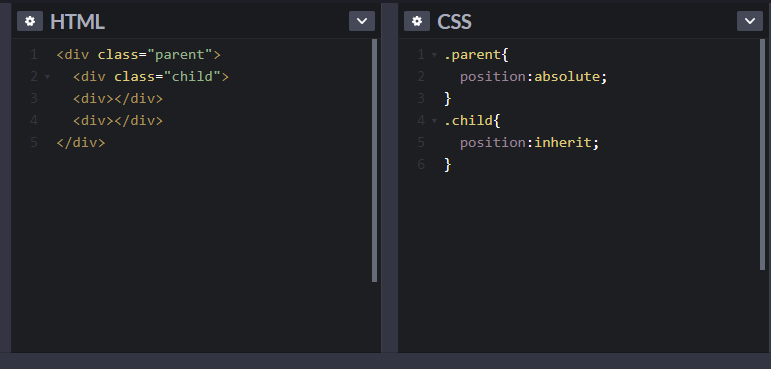 child의 position의 경우 inherit 은 상속받아라라는 의미 강제 상속을 내리는 값, 많은 css를 사용함.