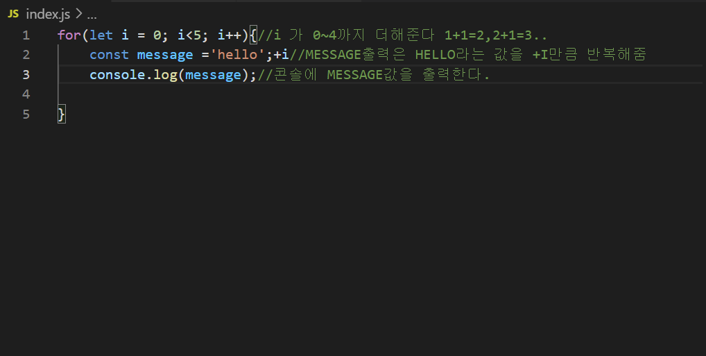 결과값 hello가 5회 출력되었다.